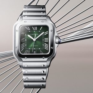 The Cartier Cool Smoky Green Santos Automatic immediately catches the eye with its unique smoky green dial, which infuses a fresh and modern touch to the Cartier Replica Watches aesthetics. The sunray finish further accentuates the beauty of this color, creating a mesmerizing play of light and shadow. Complemented by Roman numeral hour markers and sword-shaped hands crafted from stainless steel, the dial exudes elegance and sophistication.